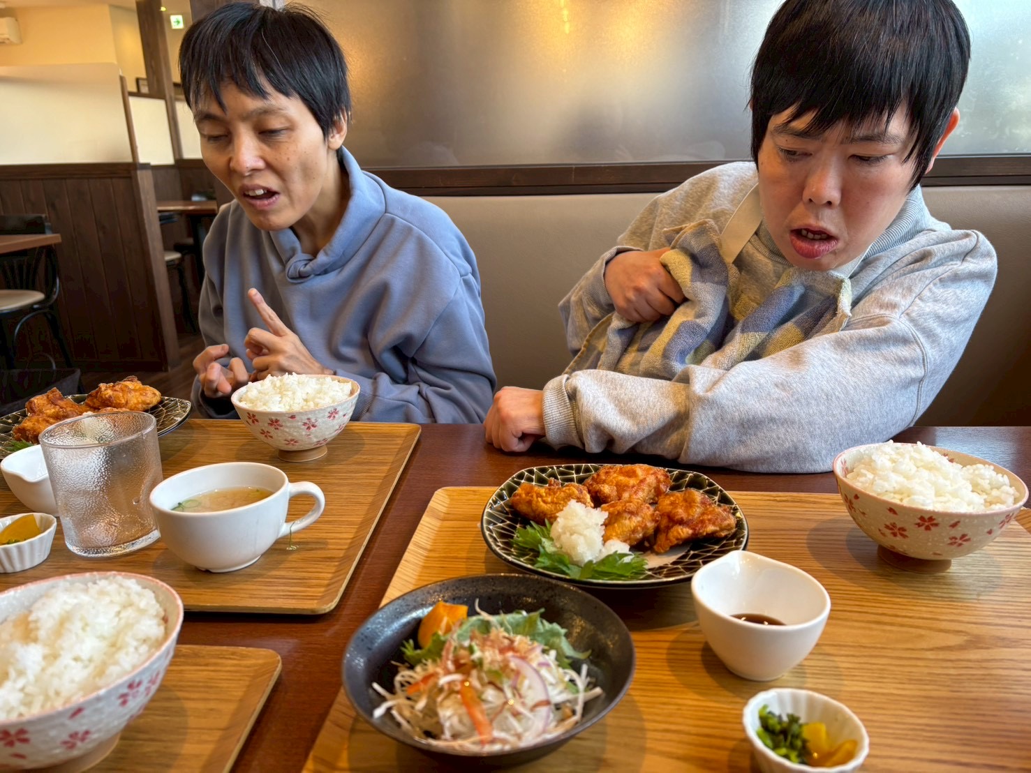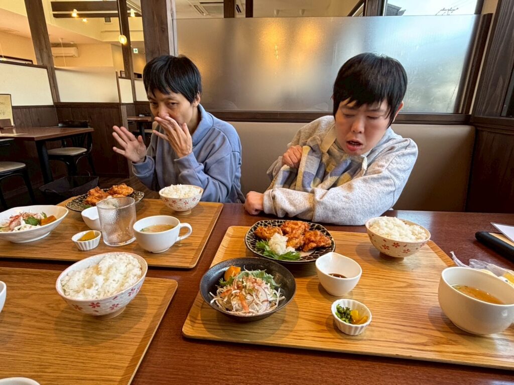 上富田町にある「カフェ&ダイニング桜香」へ個別外出へ出かけました。人気のからあげ定食をいただいています。