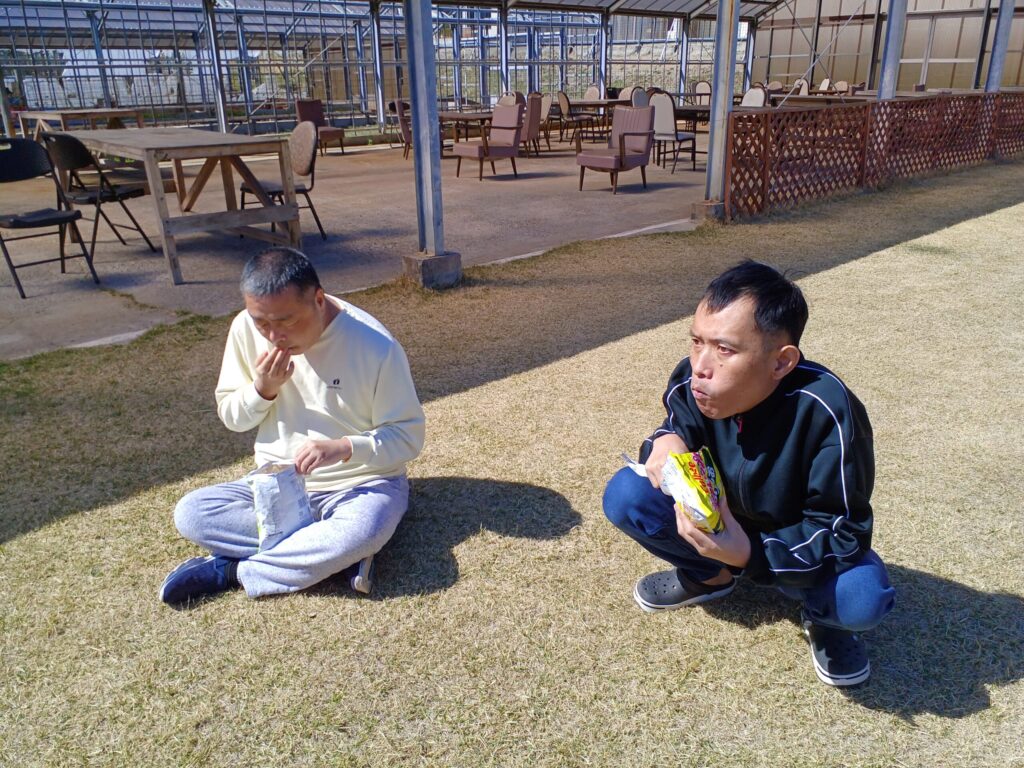 令和8年3月11日 もみのき ハウス芝生でおやつ 2026年3月12日 あすなろ花卉の郷 3月11日は、春の陽気でした。もみのきユニットは青空の下、芝生でおやつをいただきました。 ハウスでゆったりされる利用者様もいます。おもいおもいに過ごされています。 URL Copied!