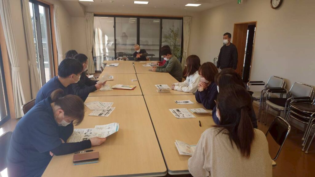 毎月、各ユニットで会議が行われています。3月11日には、もみのき会議が開催されています。3月は全ユニット会議に、施設長が出席して和歌山県障害者虐待防止研修に参加された内容の伝達研修を行うとともに、皆で話し合う機会を設けています。法人会議や主任会議の報告、令和7年度の振り返りと令和8年度に向けての話し合いや利用者様のケースカンファレンスも行われています。