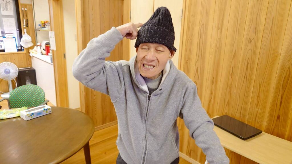 帽子コレクターの利用者様。3月11日の帽子はニット帽でした。