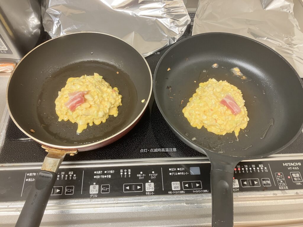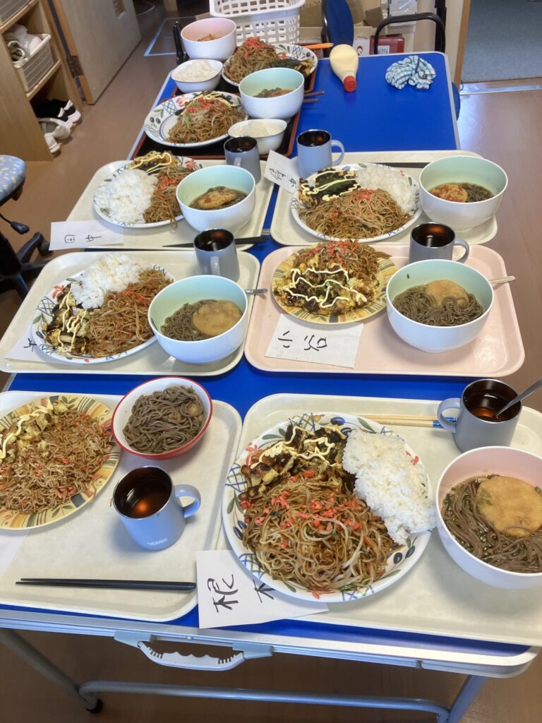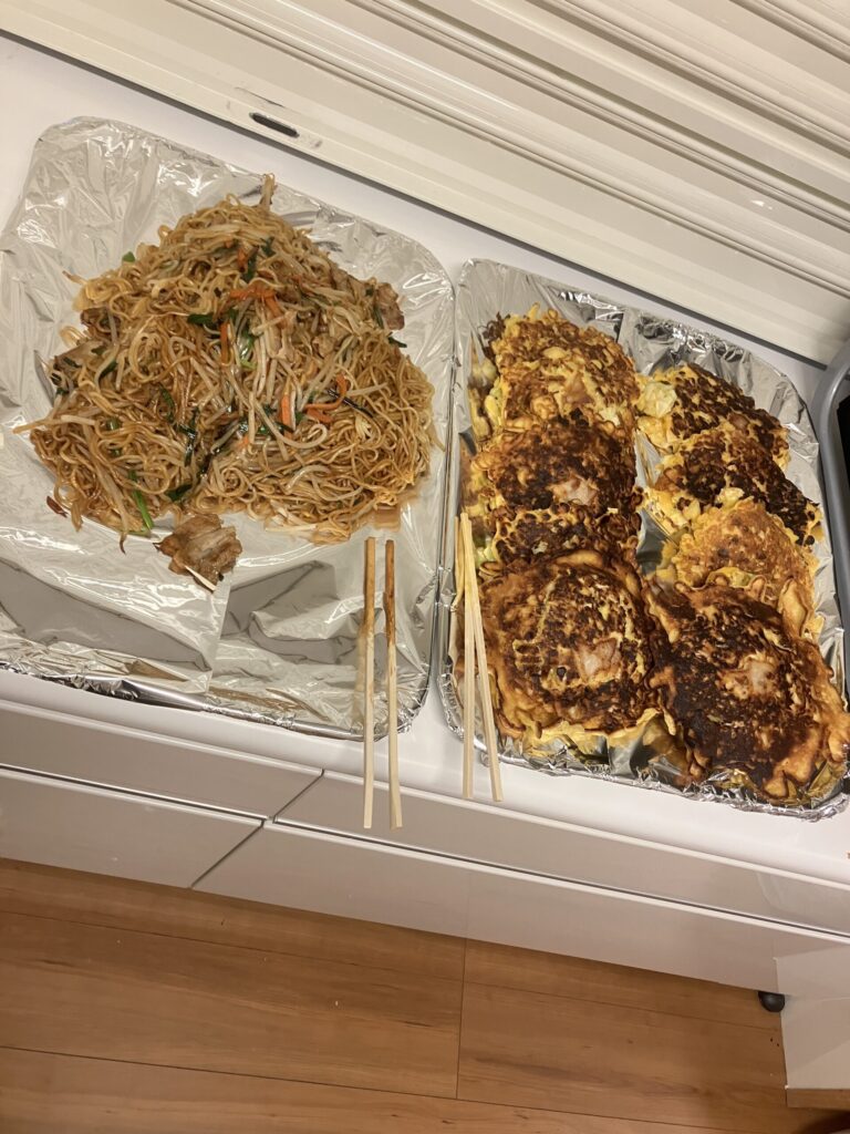 お好み焼き、焼きそばをジュージュー作っていきます。