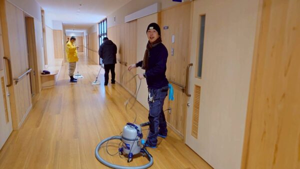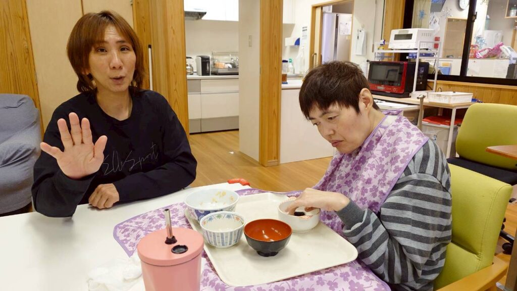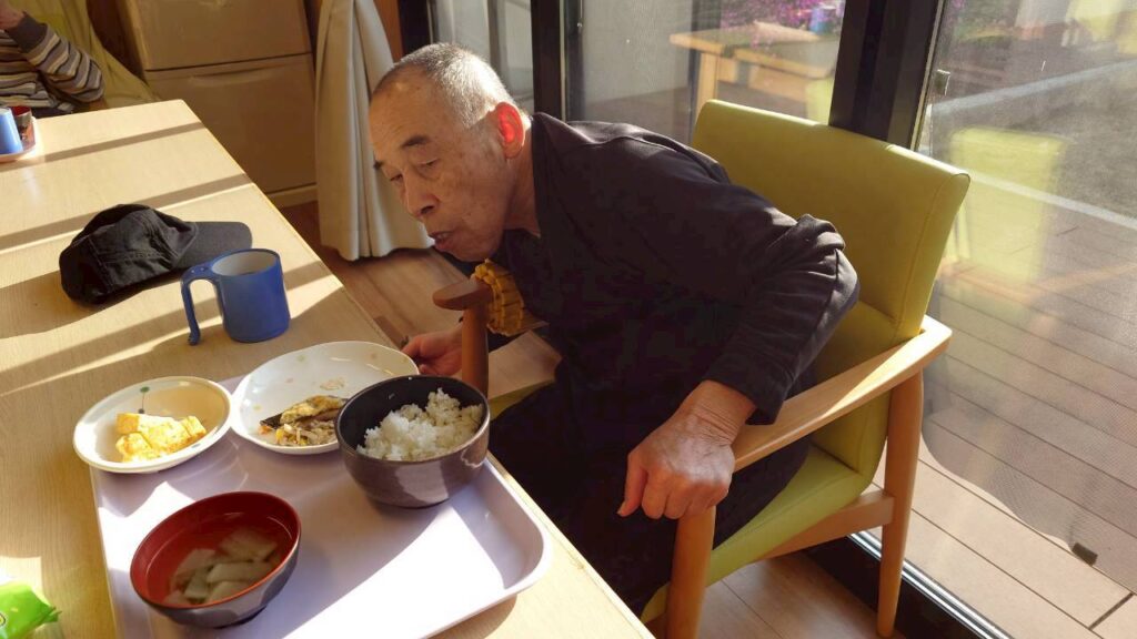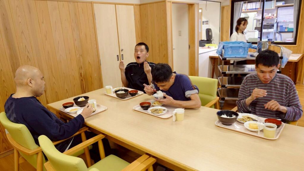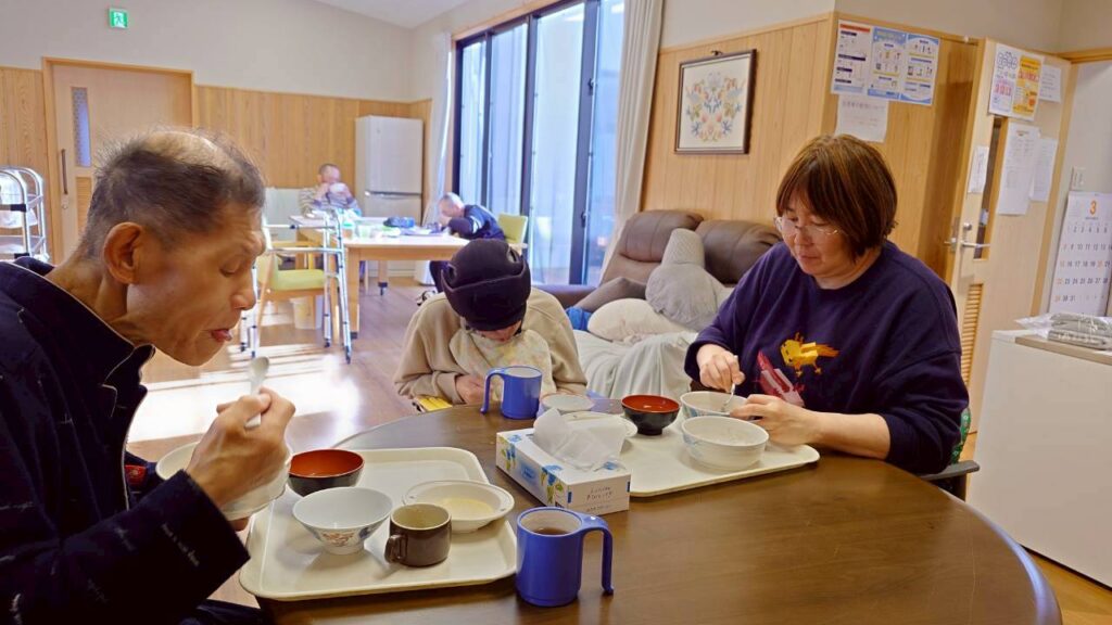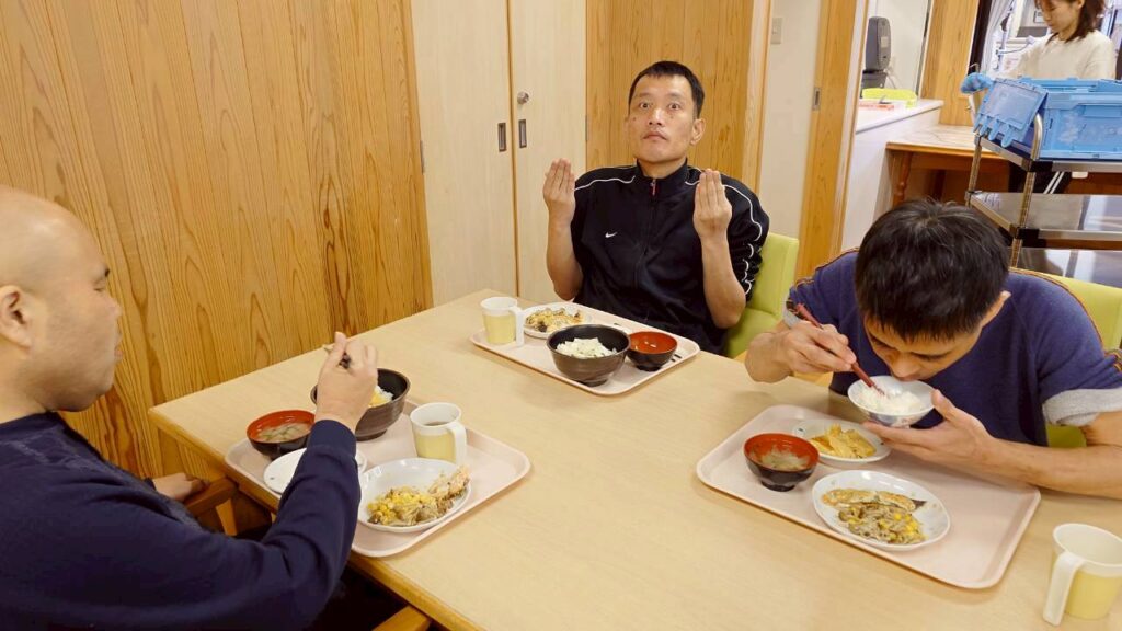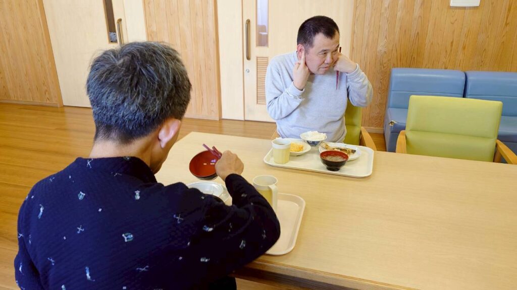 ひのきユニットの夕食の様子。夕陽がさしこんできます☀