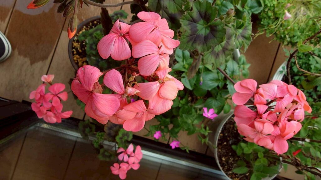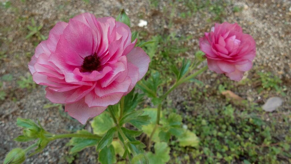 ひのきユニットの中庭に咲いたベニカノコソウ。