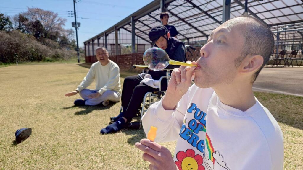 令和8年3月24日 音楽をかけながら、ボール遊び、軽運動、日向ぼっこ、シャボン玉、青空アカペラLIVE(動画あり) 2026年3月25日 あすなろ花卉の郷 バスケットボール。フリースロー。 トランポリン。 日向ぼっこ。気持ちのいい天気です☀ BBQコンロ作成、ここまで進みました。 バス車庫で日向ぼっこ。 車椅子で散策、外気浴。 シャボン玉.。o○ 魔法のシャボン玉スティック。 職員の青空アカペラLIVE。名曲3月9日。 URL Copied!