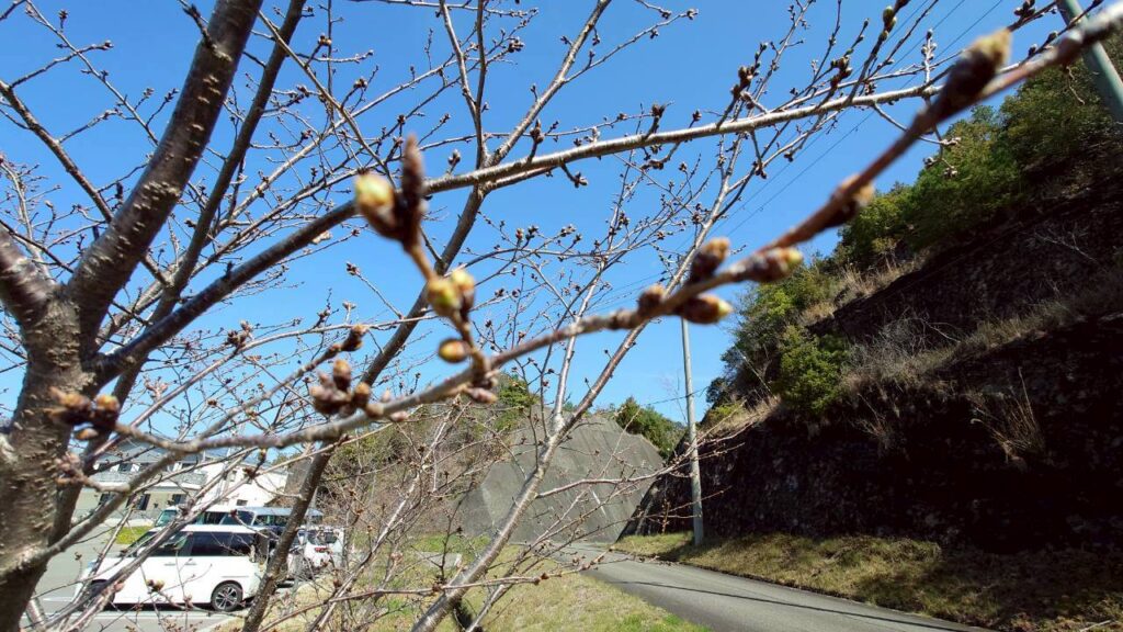 花卉の郷で植樹した桜は、まだつぼみの状態です。