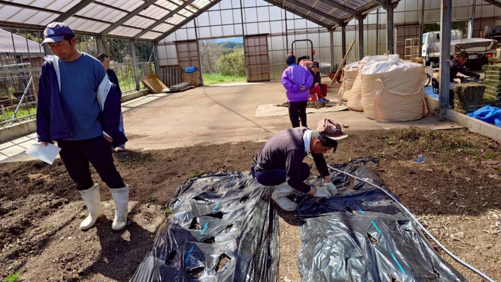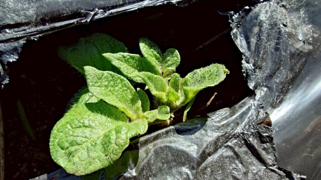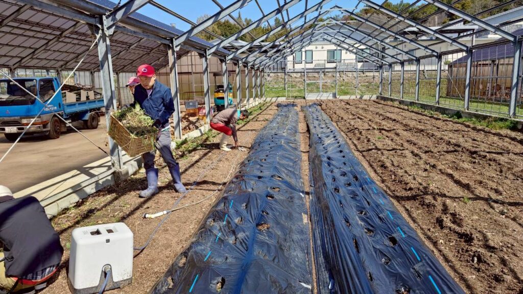 マルチシートをかけているところが、ジャガイモ畑になります。