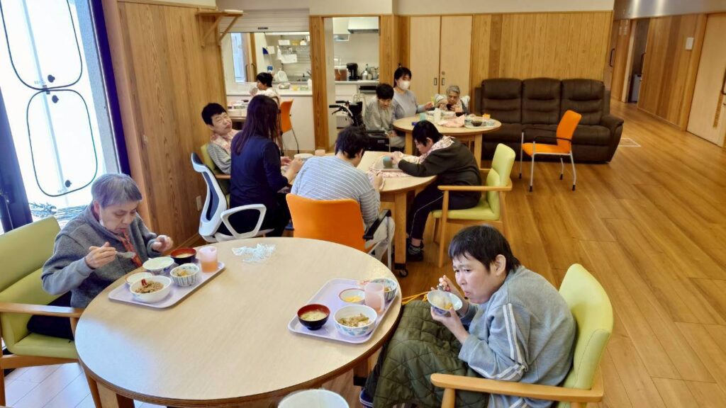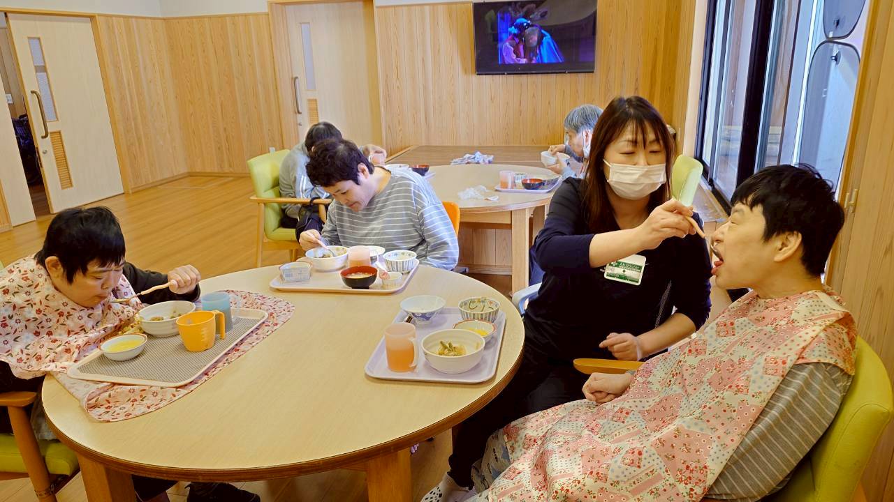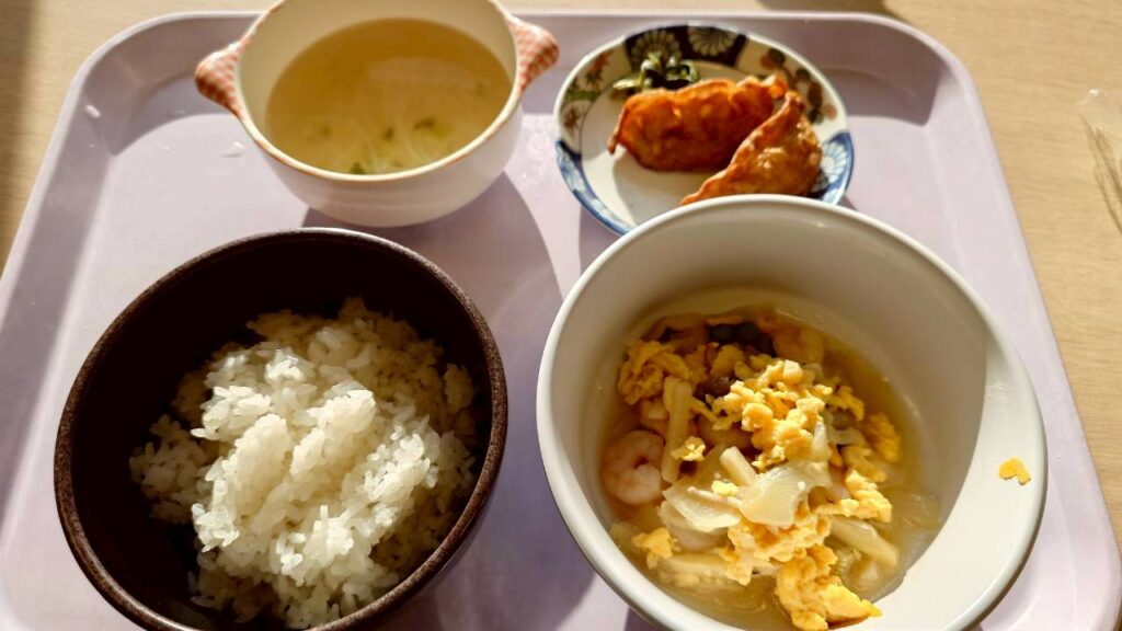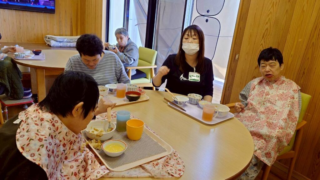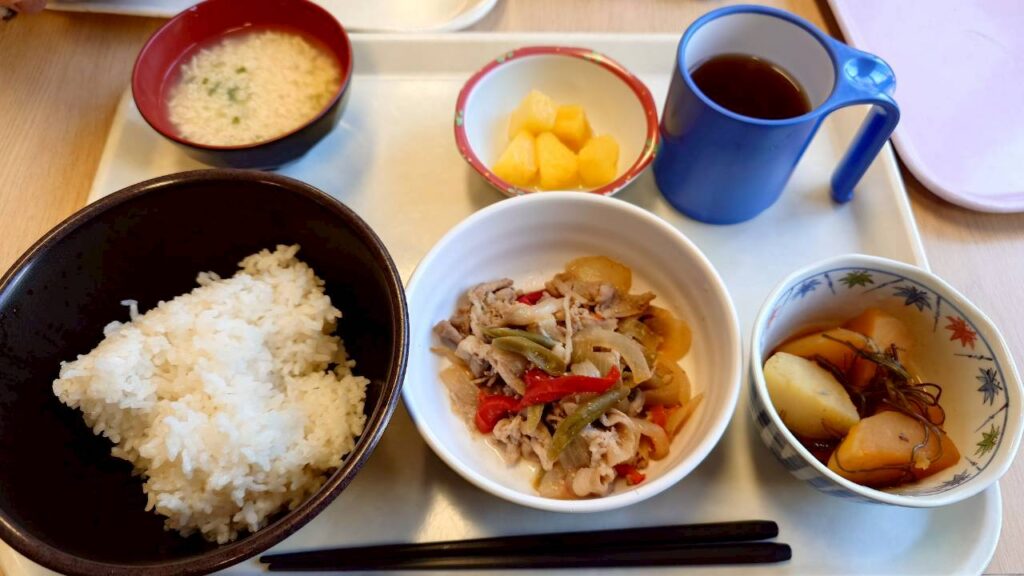 令和8年3月7日 食事の様子 つばき、もみのき、ひのき 2026年3月7日 あすなろ花卉の郷 3月7日昼食。ごはん。豚肉のポン酢炒め。さつま芋と昆布の煮物。かき玉汁。パイナップル。 各ユニットの昼食の様子を覗いてみましょう。つばきユニット。 もみのきユニットの食事風景。 統括主任も美味しそうに、もぐもぐ。 ひのきユニットの昼食の様子。 3月7日夕食。ごはん、えびと卵の中華炒め、揚げ餃子、中華スープ(はるさめ)。 URL Copied!