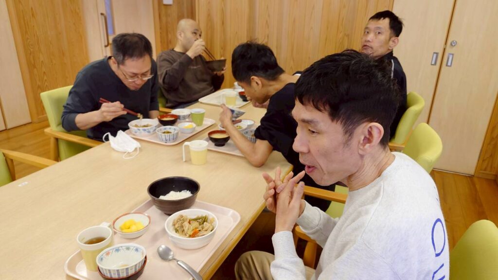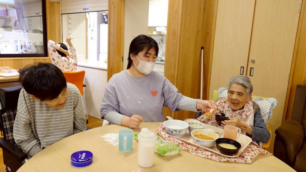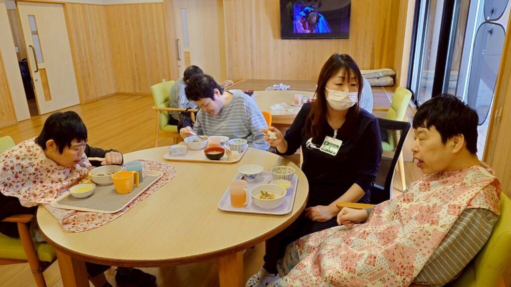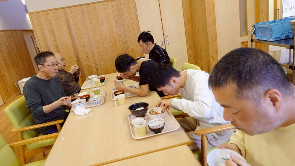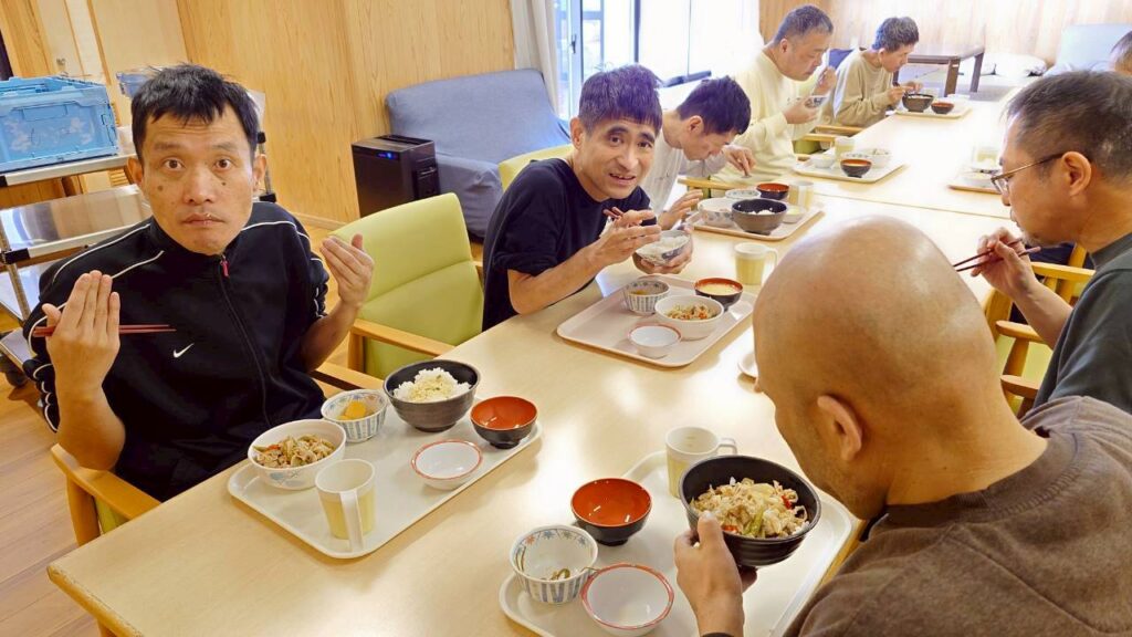 令和8年3月7日 食事の様子 つばき、もみのき、ひのき 2026年3月7日 あすなろ花卉の郷 3月7日昼食。ごはん。豚肉のポン酢炒め。さつま芋と昆布の煮物。かき玉汁。パイナップル。 各ユニットの昼食の様子を覗いてみましょう。つばきユニット。 もみのきユニットの食事風景。 統括主任も美味しそうに、もぐもぐ。 ひのきユニットの昼食の様子。 3月7日夕食。ごはん、えびと卵の中華炒め、揚げ餃子、中華スープ(はるさめ)。 URL Copied!