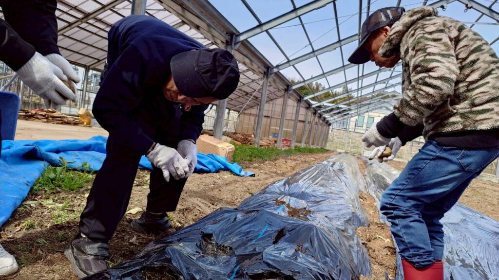 職員も慌てて、サポート。勤務で出勤が入れ違う職員よりも、毎年同じ工程に取り組む利用者様の方が、成功体験も重ねて、農作物の栽培もしっかり身につけていますね。
