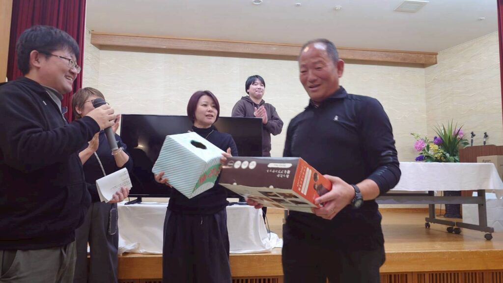 景品をゲットされた方は、ステージ前で自己紹介と一言コメント。