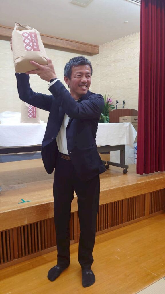 お米は花卉の郷施設長が獲得
