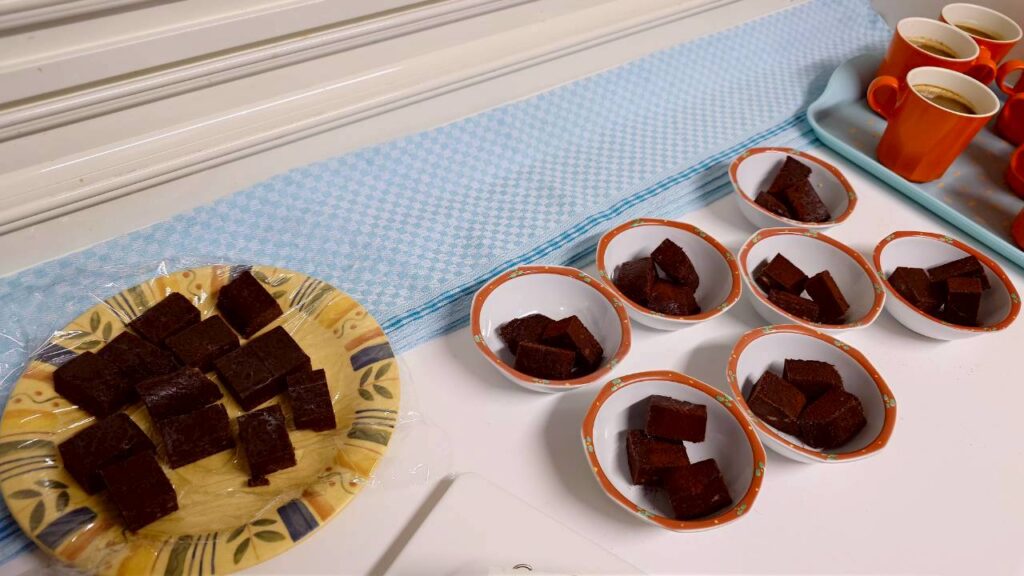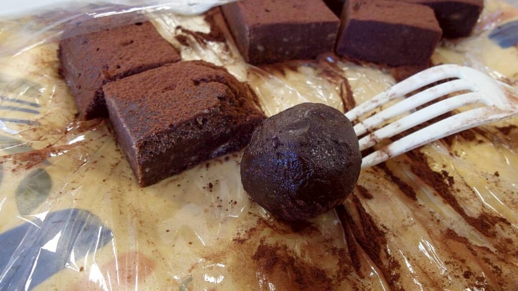 フォークで刺しているのは、同じ方法でココアパウダーをまぶしていない、けやきユニットの手作りチョコ。ともに、TikTokの動画をみて作ったそうです。