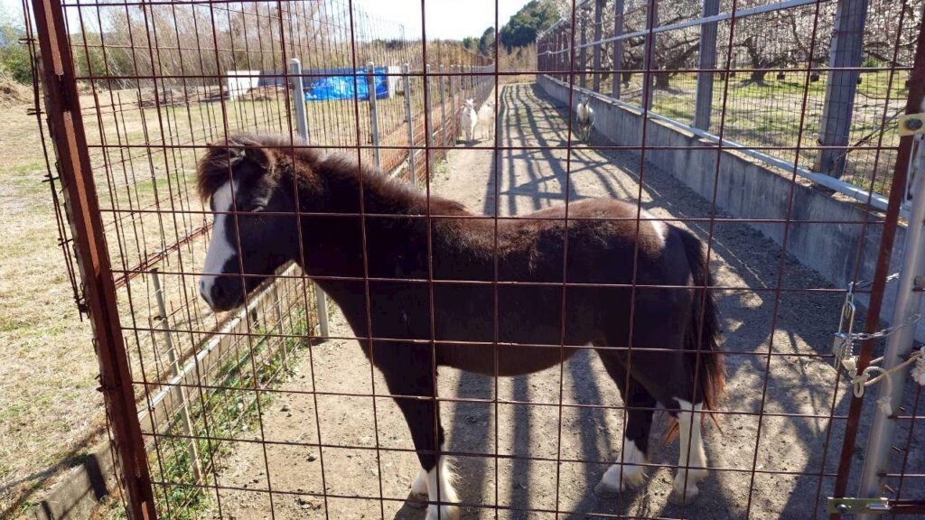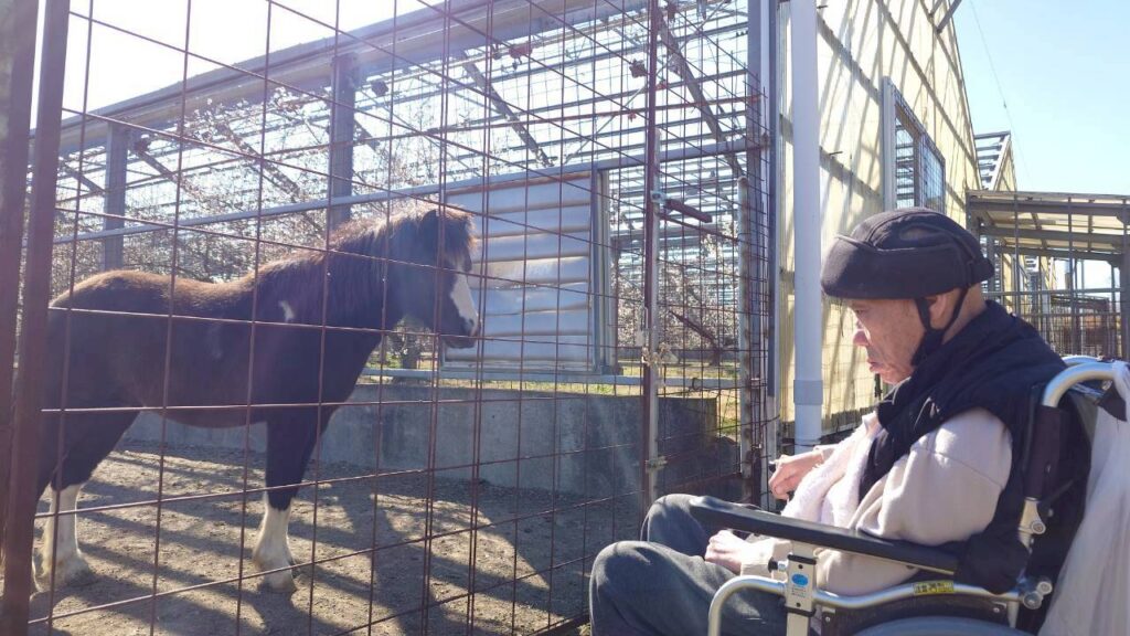 車椅子を進めていくと、ポニーとご対面。