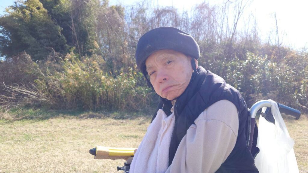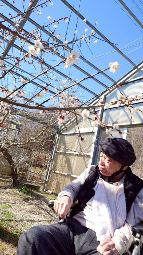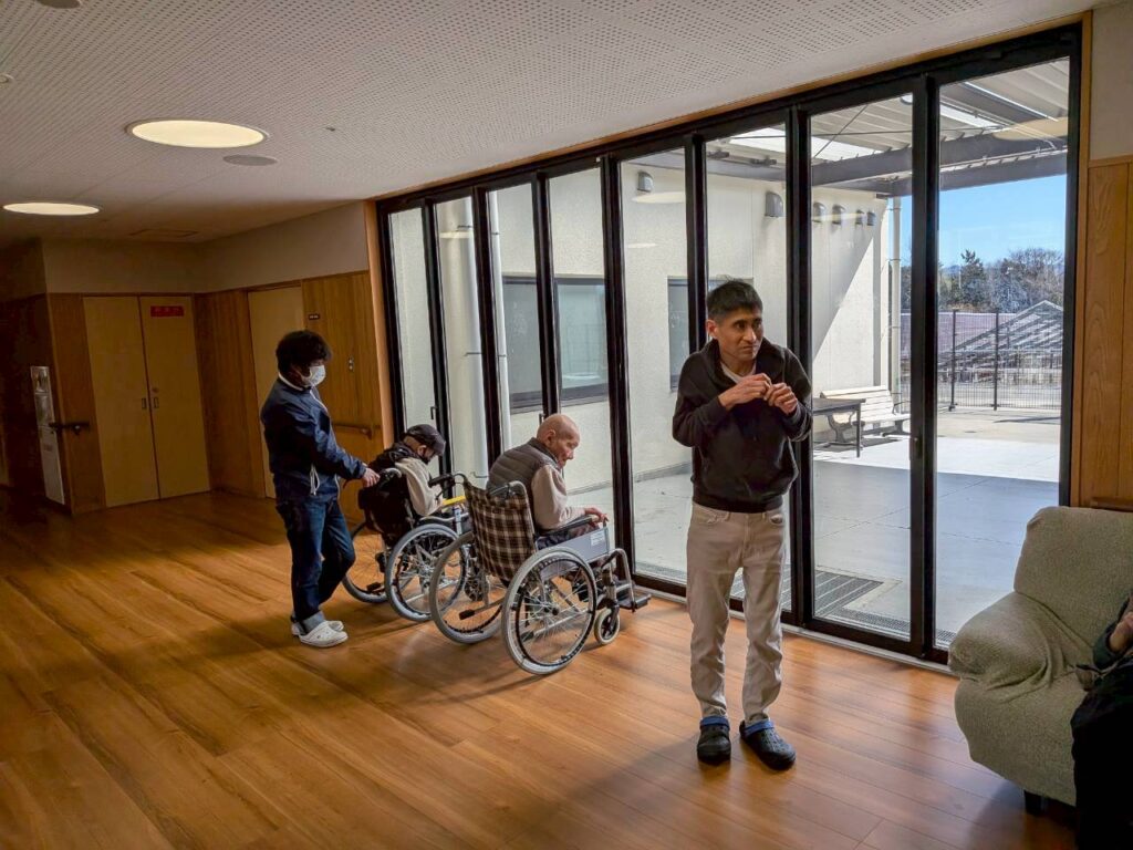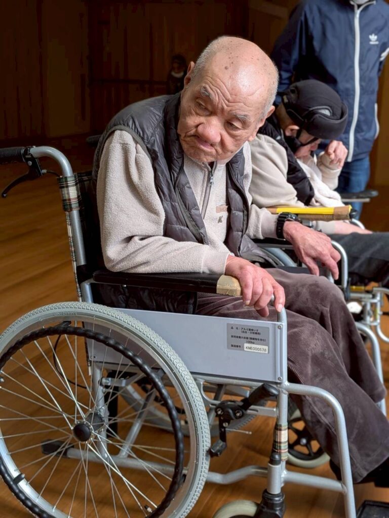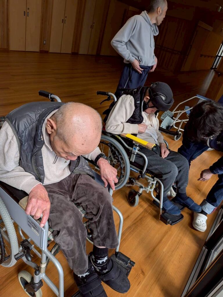 共有スペースで日向ぼっこされる利用者様たち。