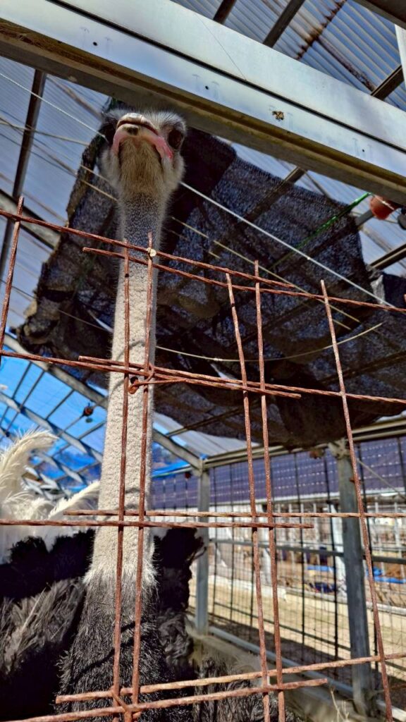 ダチョウを見上げます。朝は寒かったですが、午後は少しひんやりするものの、散策も心地よいぐらいでした。