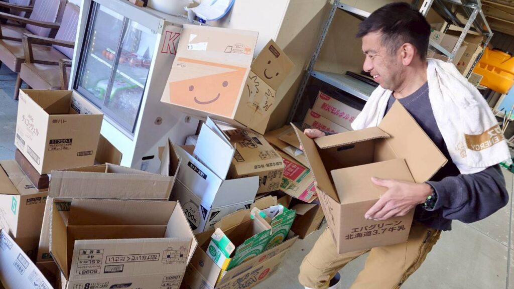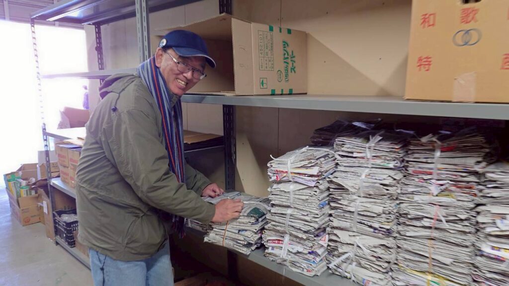 花卉の郷では、ダンボール、新聞紙・本などの古紙回収、アルミ缶などリサイクル業者に搬入しています。