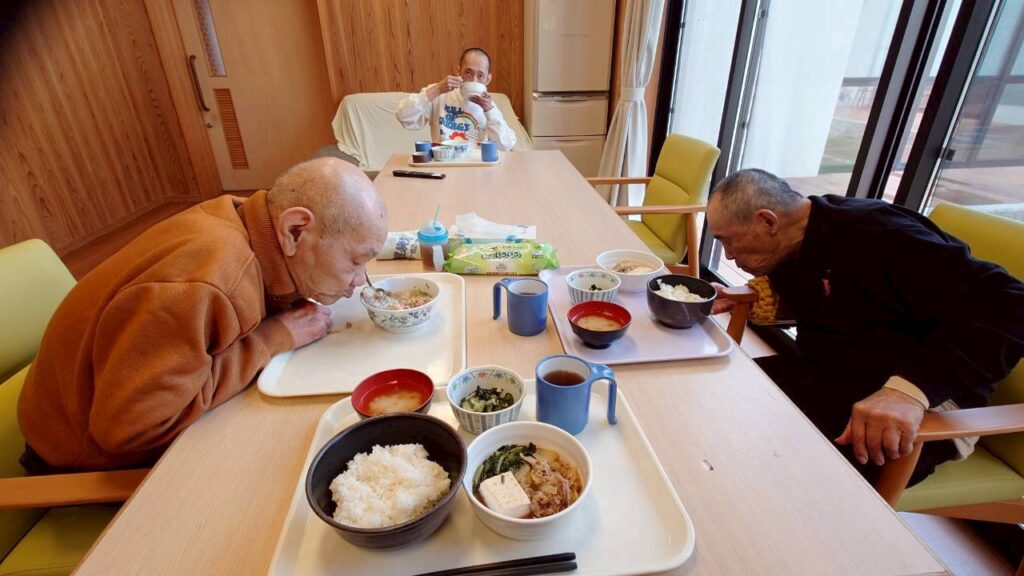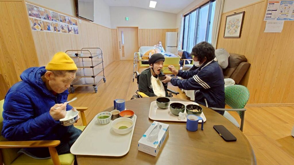 利用者様の咀嚼力や嚥下力などにあわせて、刻み食、ミキサー食、とろみをつけての提供など、個々にあった食事提供をしています。