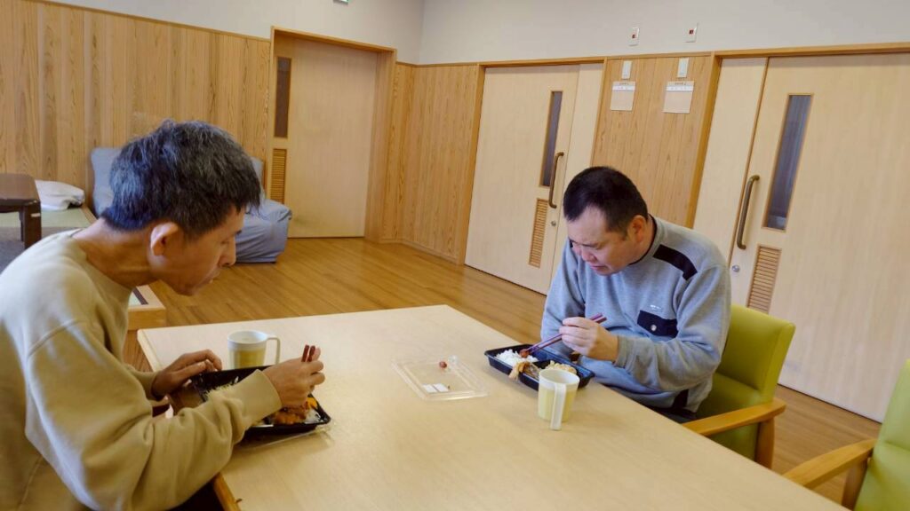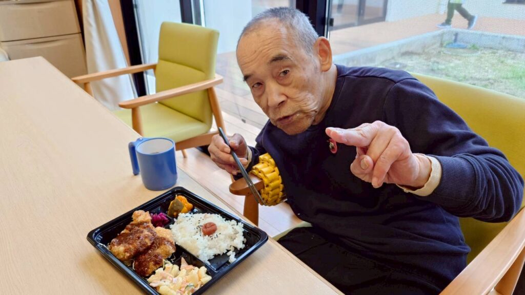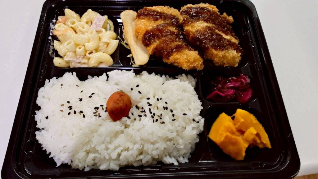 3月2日、もみのきユニットとひのきユニットは、初めて利用するお店「MOM.」のお弁当をテイクアウトしました。写真はトンカツ弁当を選択した利用者様のお弁当です。