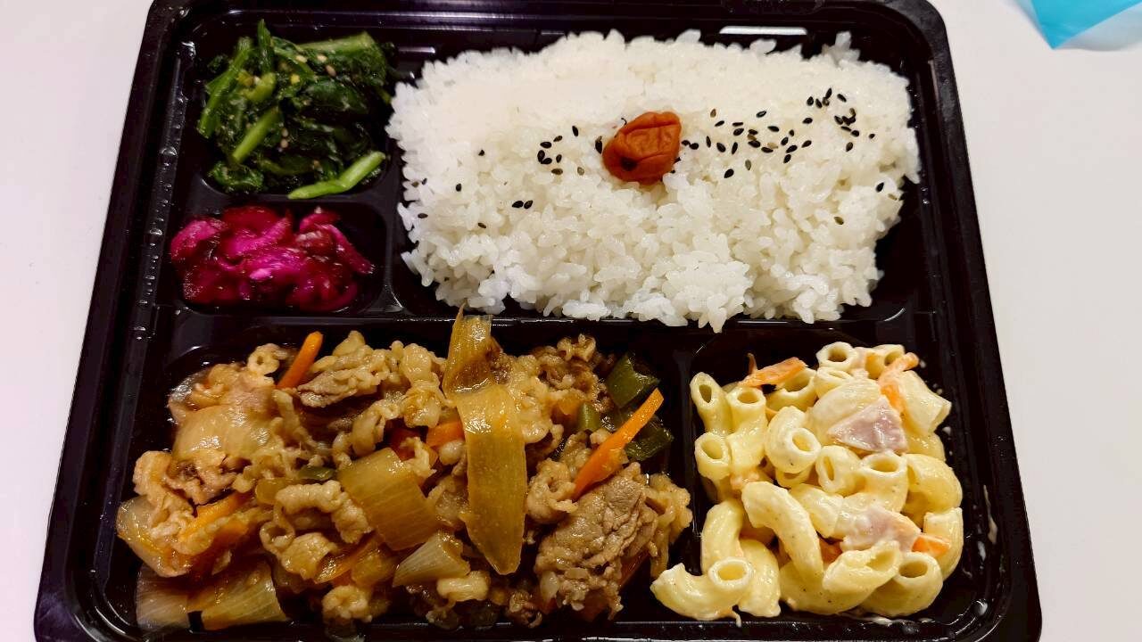 焼肉弁当。何種類か注文して利用者様に選択してもらっています。
