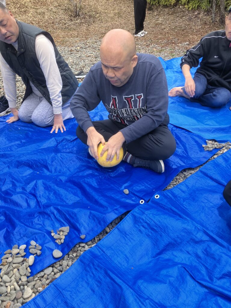 大きな柑橘、ザボン向きに挑戦。でっかいなあ。