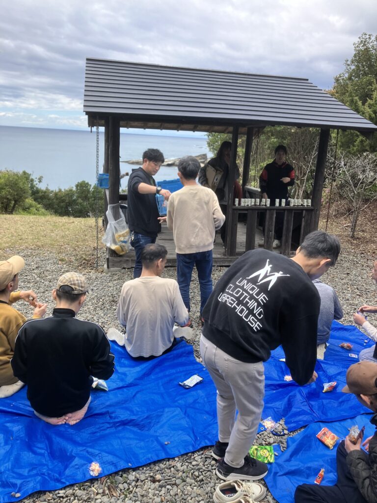 富田の金比羅神社に出掛け海を眺めながら、お弁当をいただきます。