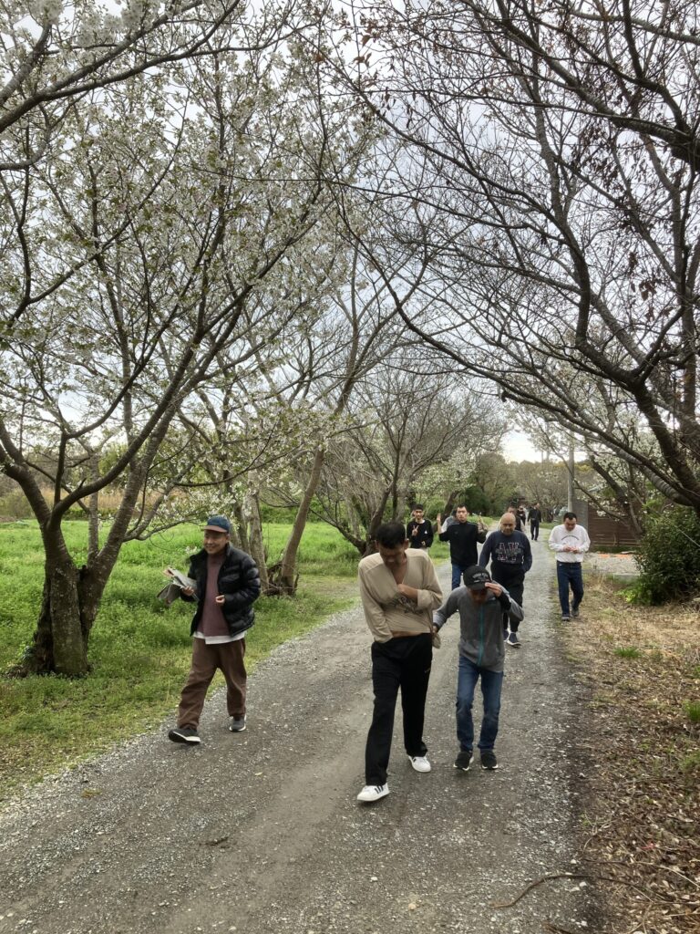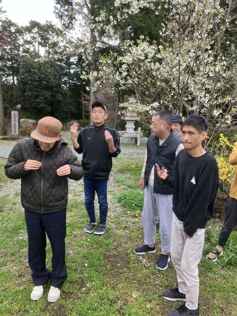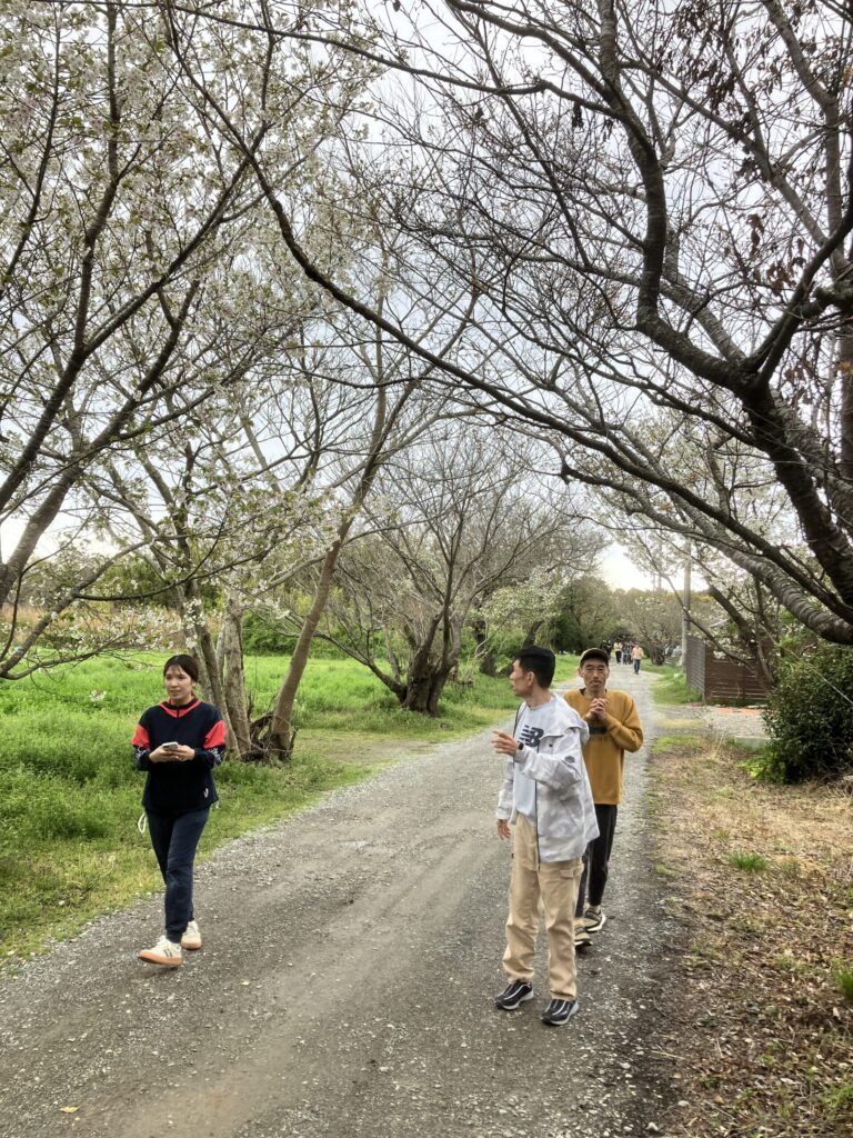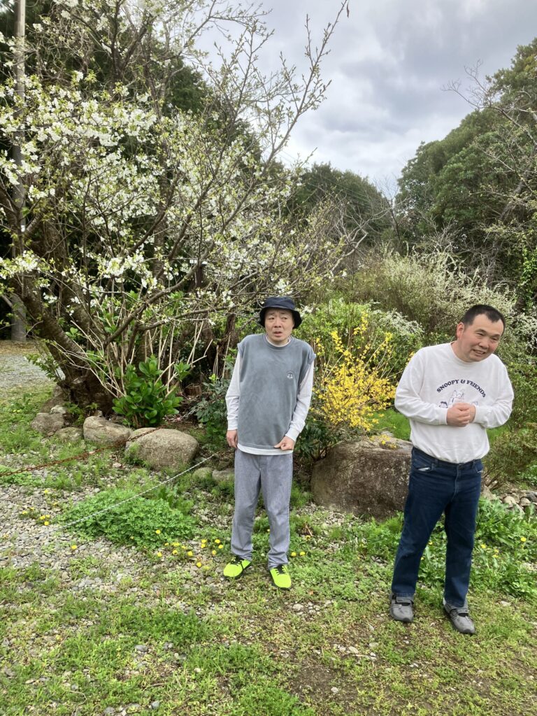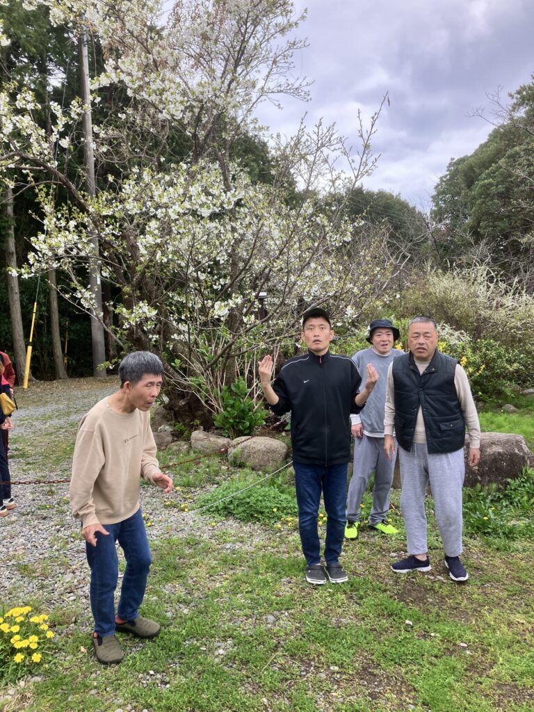 花々や少し咲いた桜と記念撮影。