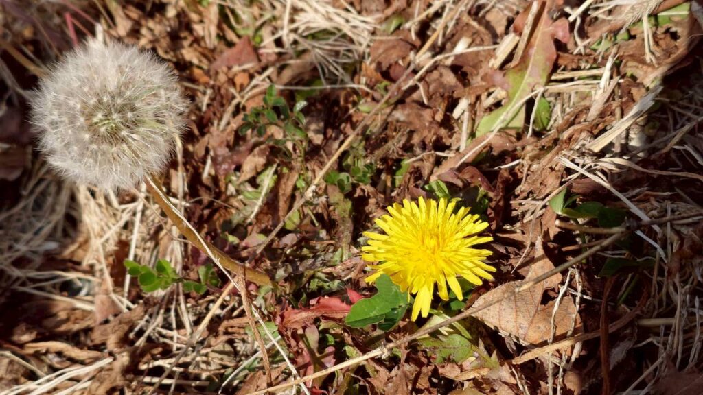 午後の散歩時に見つけた、たんぽぽ。黄色い花と白い綿毛。春の訪れが近いですね。