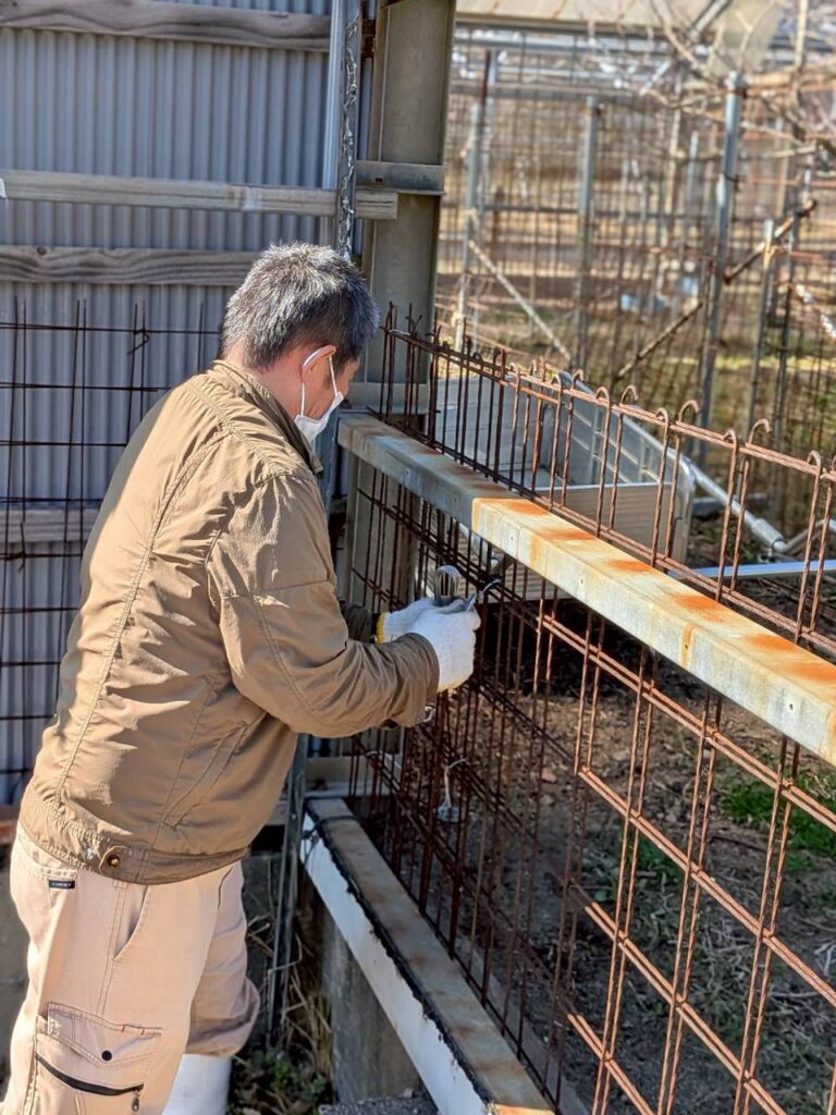 職員と利用者様で牧場、果樹園の柵の補修作業。ありがとうございます。