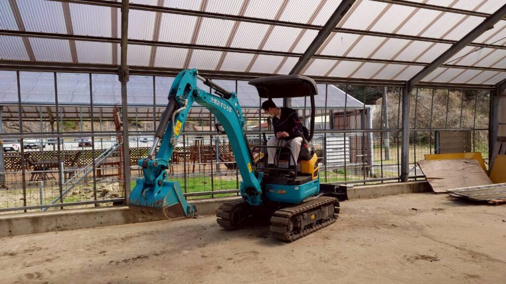 花卉の郷にもいろいろな特技や資格を持つ職員がいます。ひのきユニットの職員は、ユンボを駆使して、廃棄物を粉砕。ちなみに、あすなろのユンボはコマツ式、別にISO式の…