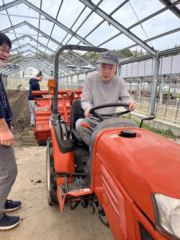 利用者様がトラクターで畑を耕運・・・の気分を感じてもらいました。実際は、すぎのきユニットの女性職員O職員がトラクターで耕運しています。まっすぐな畝が2本できまし…